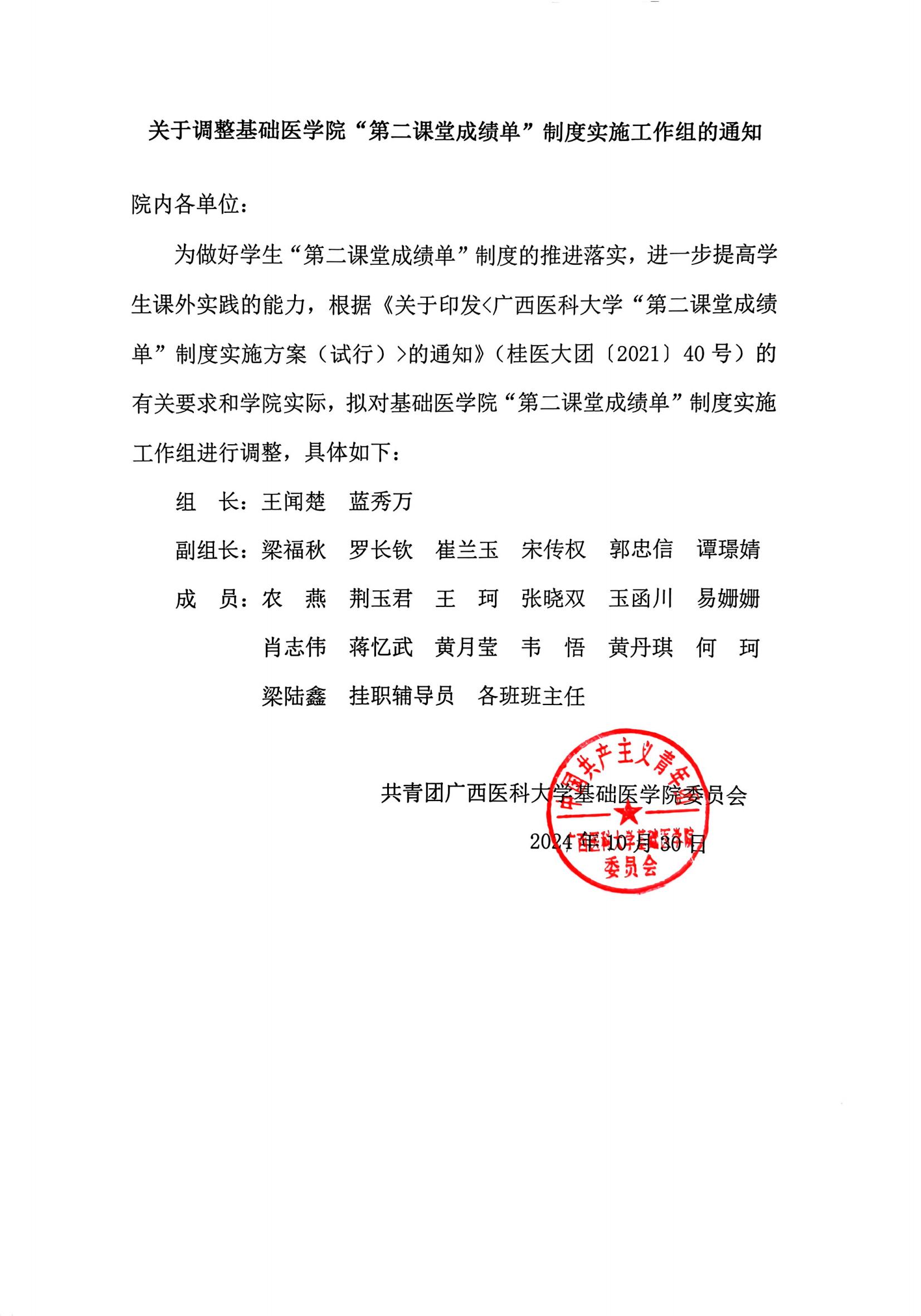 关于调整伟德国际bevictor1946“第二课堂成绩单”制度实施工作组的通知