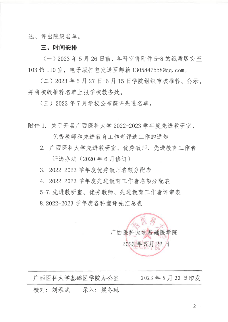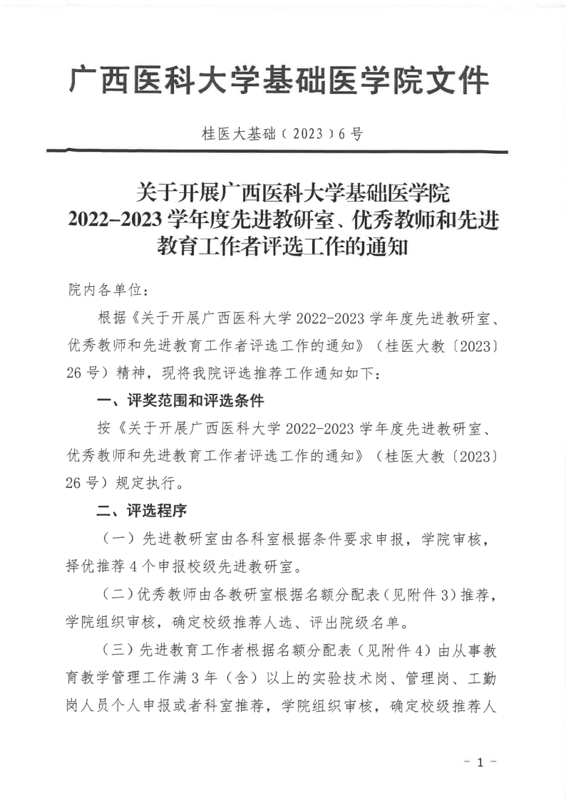 关于开展2022-2023学年度先进教研室、优秀教师和先进教育工作者评选工作的通知