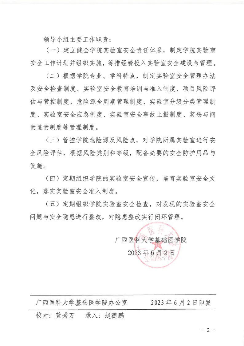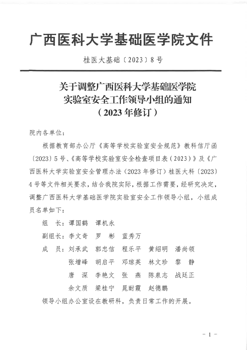 关于调整伟德国际bevictor1946实验室安全工作领导小组的通知(2023年修订)