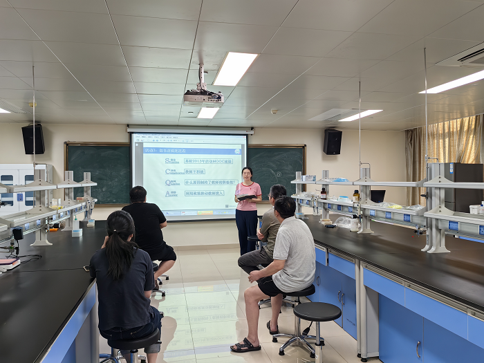 7月11日,崔兰玉老师在生物技术教研室进行了《FACULTY》培训经验分享交流活动,汇报了本次培训的主要内容,主要讲解如何根据BIOS进行教学设计,并以自己的教学设计-《转基因番茄》结合专家意见进行了案例讲解。