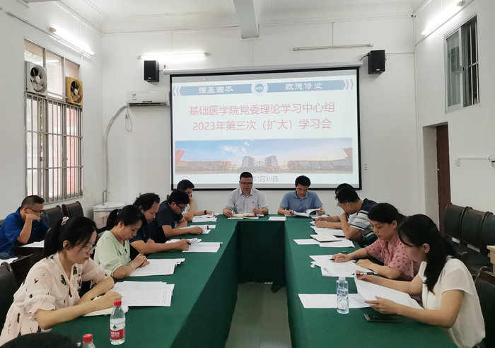 7月19日下午,基础医公司党委理论学习中心组召开2023年第三次(扩大)学习会。公司领导班子成员、党支部书记、党员代表参加会议,公司党委书记谭机永主持会议。