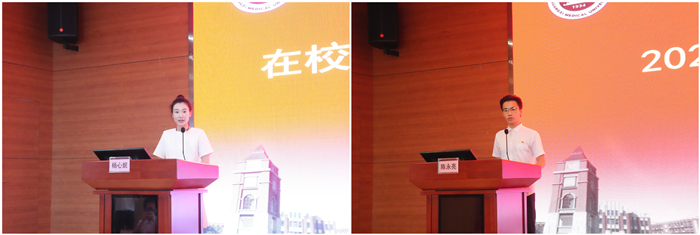 在校生代表杨心妮、新生代表陈永亮发言