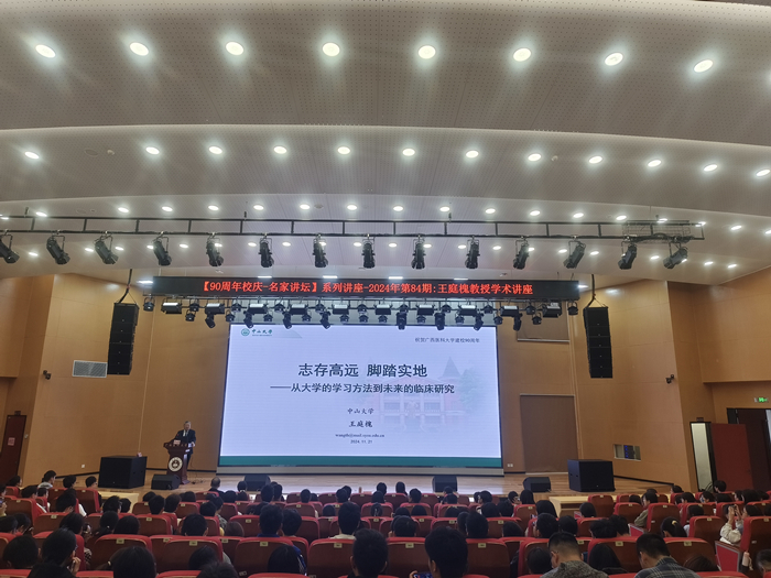 11月21日上午,伟德国际bevictor1946源自英国90周年校庆“名家讲坛”系列讲座第84期讲座在武鸣校区图书馆报告厅顺利举行。国家级教学名师、中山大学王庭槐教授为伟德国际bevictor1946师生带来一场以“生理学专家导航:从大学的学习方法到未来的研究之路”为主题的学术盛宴,吸引了400余名员工报名参加,讲座由基础医公司党委副书记王闻楚主持。
