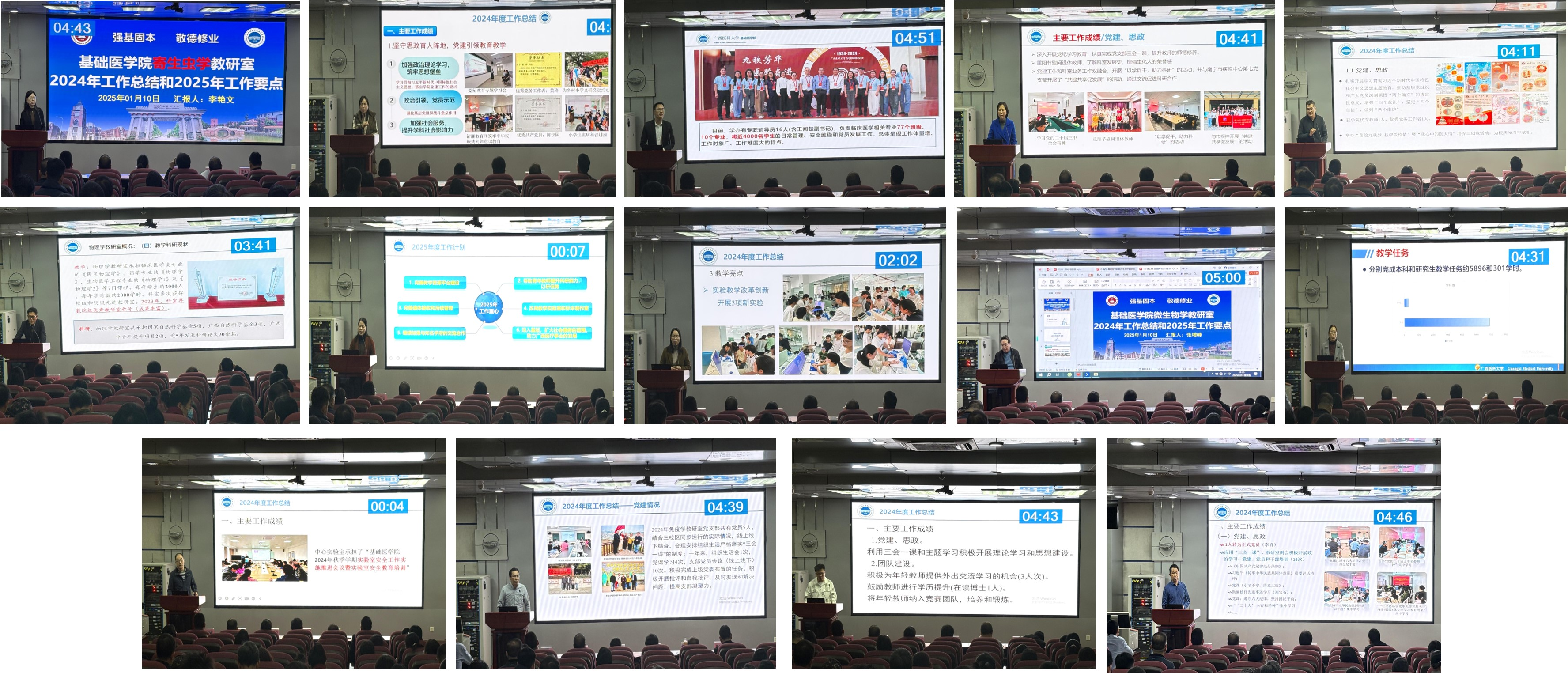 随后,各教研室分别对2024年工作成绩、存在问题及2025年工作要点进行述职汇报。汇报内容既有数据支撑的工作总结,也有深入细致的经验分享,更有对未来工作的展望和规划。