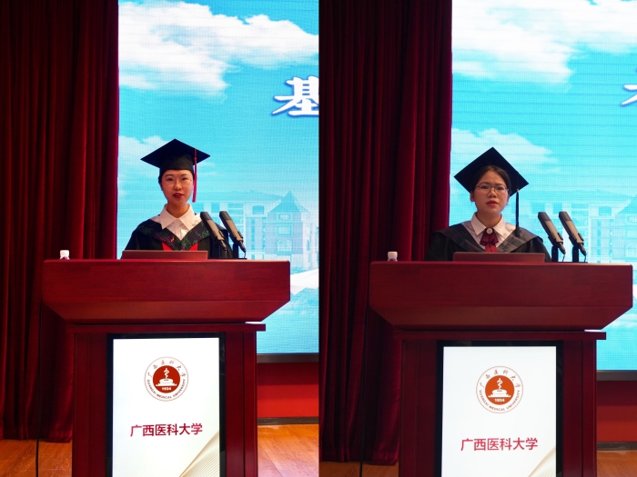 研究生导师代表黎静教授及本科生教师代表崔兰玉老师分别为毕业生送上寄语和祝福。研究生毕业生代表李玥琪和本科毕业生代表李金燕先后发言,她们回顾了在“厚德励志,博学弘医”精神引领下的成长历程,表达了对母校、师长的深切感恩,并立志在未来岗位上勇担使命,踔厉奋发,为祖国医药卫生事业贡献自己的力量。