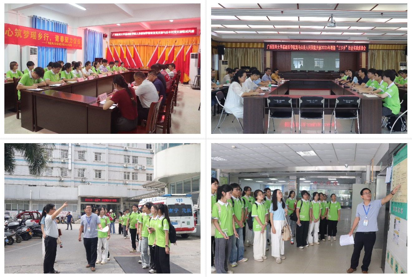 在马山县人民医院,医院代表及优秀员工们就医学学习、医院建设、职业规划等方面向实践团成员分享经验,并勉励同学们要夯实基础医学知识,注重实践经验积累,以实干笃行书写医者担当。