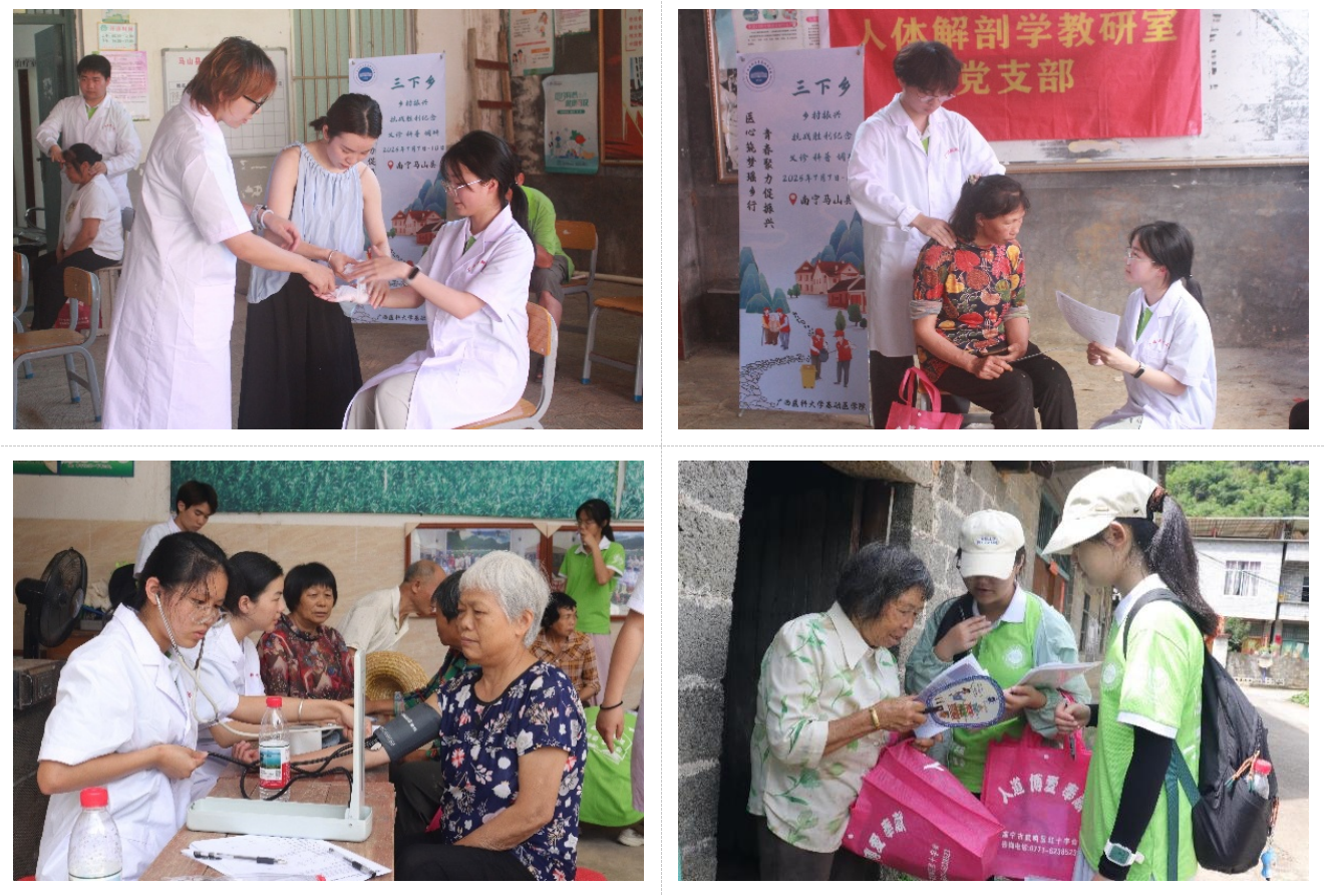 为响应国家“健康中国”战略和乡村振兴战略号召,引导医员工在实践中锤炼专业技能、厚植家国情怀。2025年7月7日至7月10日,伟德国际bevictor1946团委员工会联合教育部首批“全国高校黄大年式教师团队”人体解剖与组织胚胎学教师团队代表组成乡村振兴实践团赴南宁市马山县开展暑期“三下乡”社会实践活动。
